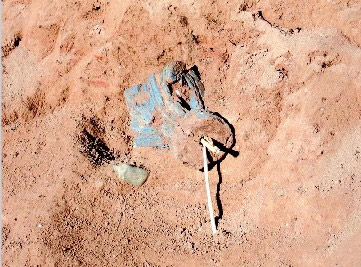 11月12日,乌鲁木齐晨报记者马燕从新疆吉木萨尔县文物局了解到,近日,吉木萨尔县千佛洞遗址首次发现佛龛遗迹,文物部门认为,如能据此再有重大发现,将对千佛洞遗址的进一步保护和发掘以及提升其文化价值起到重要作用。 11月12日,该县文物局工作人员告诉记者,在发现佛龛的地方,由于雨水冲刷形成塌陷,10月31日,景区看护员发现后立即通知了吉木萨尔县文物局,技术人员赶到此处,用手铲下挖约20厘米时,斜坡上出现了3个佛龛残基。 此次发现的佛龛在千佛洞古洞西北方向一土墩顶部,坐西面东。最北端佛龛的底部由红方砖铺成,砖长约30厘米、厚5厘米;中间的佛龛清理出一件高约8厘米的泥塑发髻残件,发髻表面有藏蓝颜色,头发盘绕模样规整。佛龛间隔约40厘米,佛龛口宽约60厘米。