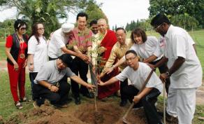 朝山之行结束后,主办当局循例在每个终点种树纪念。后右3起拿督陆景隆、巴玛得钦多杰仁波切、