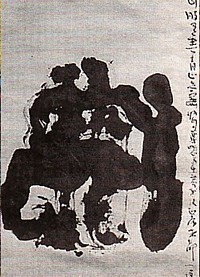 评论家认为他的字不单是书法,也是字画。其实那些书法画都是自然形成的,像一幅《佛》字,“我在写时是很自然的,根本什么也没想,有人说我处在入定中、意念中,但我没感觉。” “我就像个小孩,拿起笔我就写,写的时候会出现很多奇迹、很多形象。落笔时很快、很柔和,像舞蹈一样,写完后那个字就会呈现一个自然的形象,人字部像一个人在拜佛,旁边那个字就会出现狮子老虎龙。”