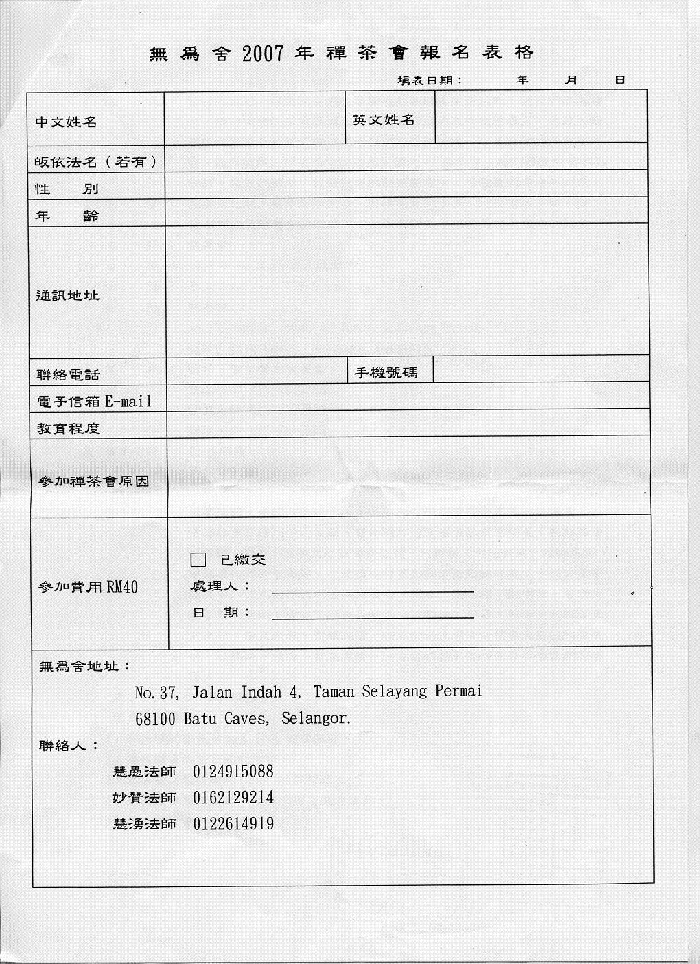 地点:无为舍(No.37, Jalan Indah 4, Taman Selayang Permai, 68100 Batu Caves, Selangor.)