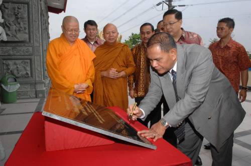 (印尼讯)雅加达北达森美兰金德院中段玄坛宫地藏王属下的南海观音寺(Vihara Avalokita),週日(10月4日)上午由宗教部佛教司司长布迪主持开幕典礼。