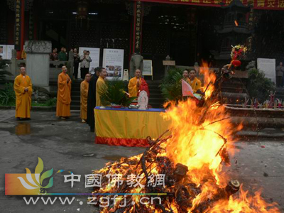 (中国讯) 5月14日2时30分,在全球肆虐了一个多月的甲型H1N1流感病毒,近日零星“闯关入境”进入我国,在四川、山东出现了两起甲型 H1N1流感病例。 为了让众多百姓消除担心和恐惧,救度瘟疫中苦难的大众。由道坚法师主法举办的为期三天的驱瘟消灾法会,在完成了按传统送瘟神等一系列活动后圆满结束。愿佛力加持让这次瘟疫早除,保佑众生,早日离苦得乐。祈祷国泰民安,风调雨顺,四季无灾,六时吉祥。