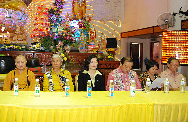 右起:大会总秘书庄堡靖居士,大会名誉主席拿汀斯里卢翠婷太平局绅,马佛总副主席明吉法师,大会名誉主席黄志源居士,大会发起人赖必雄居士